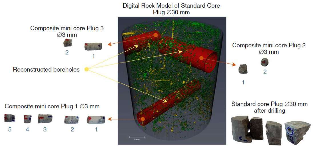 The task of reliable characterization of complex reservoirs is tightly coupled to studying their microstructure at a variety of scales, which requires a departure from traditional petrophysical approaches and delving into the world of nanoscale. A promising method of representatively retaining a large volume of a rock sample while achieving nanoscale resolution is based on multiscale digital rock technology. The smallest scale of this approach is often realized in the form of working with several 3D focused-ion-beam–scanning-electron-microscopy (FIB-SEM) models, registration of these models to a greater volume of rock sample, and estimation and scaling up of model local properties to the volume of the entire sample. However, a justified and automated selection of representative regions for building FIB-SEM models poses a big challenge to a researcher. In this work, our objective was to integrate modern SEM and mineral-mapping technologies to drive a justified decision on location of representative zones for FIB-SEM analysis of a rock sample. The procedure is based on two experimental methods. The first method is automated mapping of sample surface area with the use of backscattered electrons (BSEs) and secondary electrons (SEs); this method has resolution down to nanometers and spatial coverage up to centimeters, also referred to as large-area high-resolution SEM imaging. The second method is automated quantitative mineralogy and petrography scanning that allows covering sample’s cross section with a mineral map, with resolution down to 1 µm/pixel. Data gathered with both methods on millimeter-sized cross sections of rock samples were registered and integrated in the paradigm of joint-data interpretation, augmented with computer-based image-processing techniques, to provide a reliable classification of nanoscale and microscale features on sample cross sections. The superimposed SEM and mineral-map images were combined with physics-based selection criteria for reasonable selection of FIB-SEM candidates out of a great number of potential sites. In the result, a semiautomated work flow was developed and tested. Demonstration of the work flow is made on one of Russia’s most promising tight gas formations, where the characteristic dimension of void-space objects spans from a single nanometer to millimeters. An example of an optimized site selection for FIB-SEM operations is discussed.