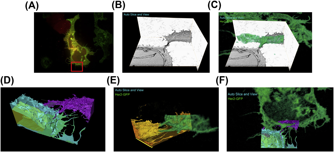 While fluorescence microscopy provides tools for highly specific labeling and sensitive detection, its resolution limit and lack of general contrast has hindered studies of cellular structure and protein localization. Recent advances in correlative light and electron microscopy (CLEM), including the fully integrated CLEM workflow instrument, the Thermo Scientific CorrSight with MAPS, have allowed for a more reliable, reproducible, and quicker approach to correlate three-dimensional time-lapse confocal fluorescence data, with three-dimensional focused ion beam–scanning electron microscopy data. Here we demonstrate the entire integrated CLEM workflow using fluorescently tagged MCF7 breast cancer cells.