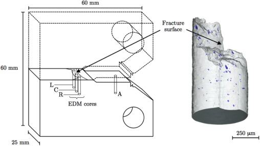 X-ray computed tomography (XCT) has been shown to reveal the true extent of ductile damage below the fracture surface of failed test specimens, which is often significantly underestimated when probed using 2D serial sectioning techniques and a microscope, since a single plane of material may only exhibit only a handful of resolvable voids.