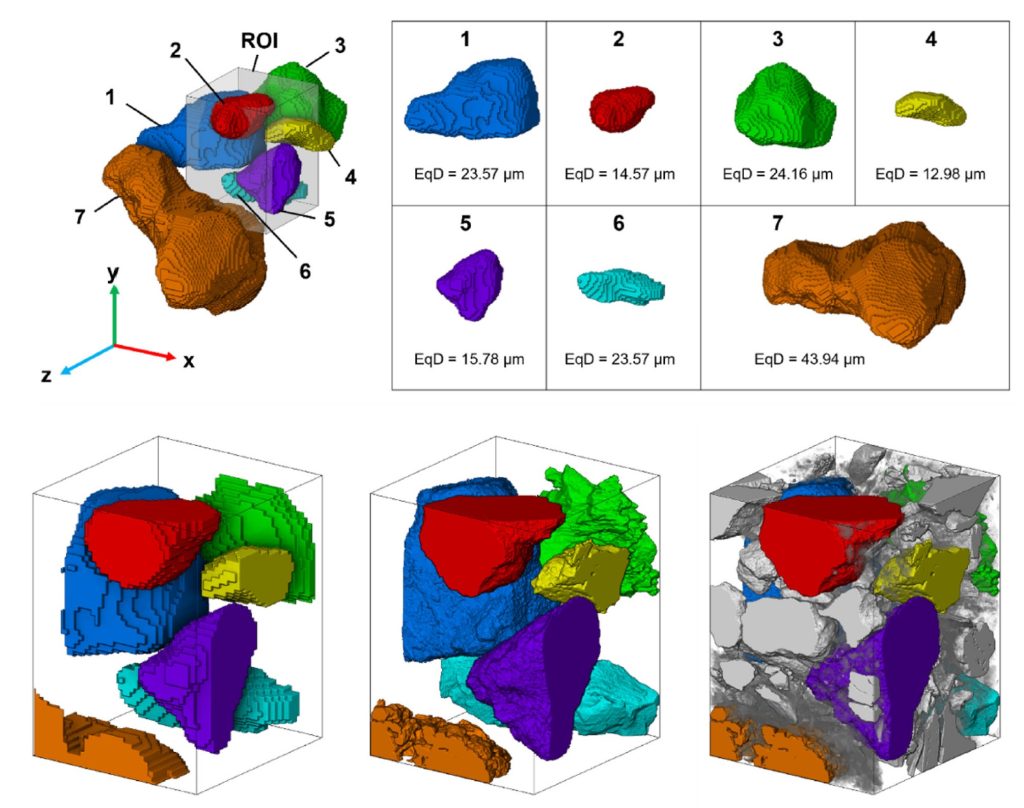 The micro- and nano-tomographic data were visualized and analyzed using the commercial software Thermo Fisher Avizo® which provides mainstream image processing modules and allows customized operation development.