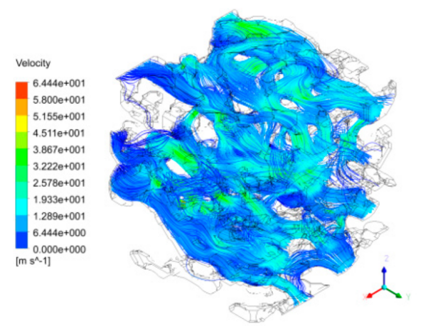 Then, the 3D datacube reconstructed from the coal’s CT scanning data was visualized with the use of Avizo, an advanced visualization software. By means of a gray-scale segmentation technique, the model of the coal’s micro-pore structure was extracted from the object region, and the precise characterization was then conducted. Finally, the numerical simulation on the water seepage characteristics in the coal micro-pores model under the pressure of 3 MPa was performed on the CFX platform. Results show that the seepage of low-pressure water exhibited preference to the channels with large pore radii, short paths, and short distance from the outlet. The seepage pressure of low-pressure water decreased gradually along the seepage direction, while the seepage velocity of low-pressure water decreased gradually along the direction from the pore center to the wall. Regarding the single-channel seepage behaviors, the seepage velocity and mass flow rate of water seepage in the X direction were the largest, followed by the values of the seepage in the Y direction, and the seepage velocity and mass flow rate of water seepage in the Z direction were the smallest. Compared with the results in single-channel seepage, the dual-channel seepage in the direction of (X + Y) and the multi-channel seepage in the direction of (X + Y + Z) exhibited significant increases in the overall seepage velocity. The present study extends the application of 3D CT scanning data and provides a new idea and approach for exploring the seepage rules in coal micro-pore structures.