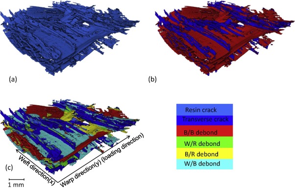 The datasets obtained at different fatigue cycles were aligned using the registration module in Avizo. Subsequently a series of co-registered cross-sections parallel and perpendicular to the loading direction have been taken from each dataset to investigate the evolution of damage and the interaction between the different types of damage.
