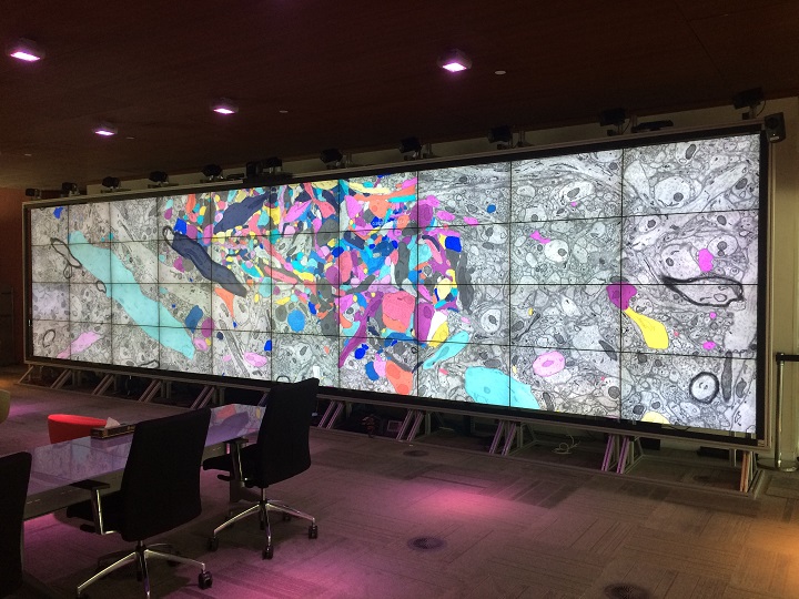 [KAUST Visualization Core Lab showed the Magistretti-Calì team] “how to use Avizo, a data visualization and analysis tool. It helped to assist them with skeletonization of the segmented cells into graphs and also enabled integration of the products with the rest of their tools and workflows. (…) As the number of individuals working with Magistretti and Calì continued to grow, the biologists and segmentation technicians needed to review their work together. KAUST Visualization Core Lab’s large Showcase Display Wall enabled the entire team to see entire swaths of data clearly; work with familiar tools; and communicate directly.”