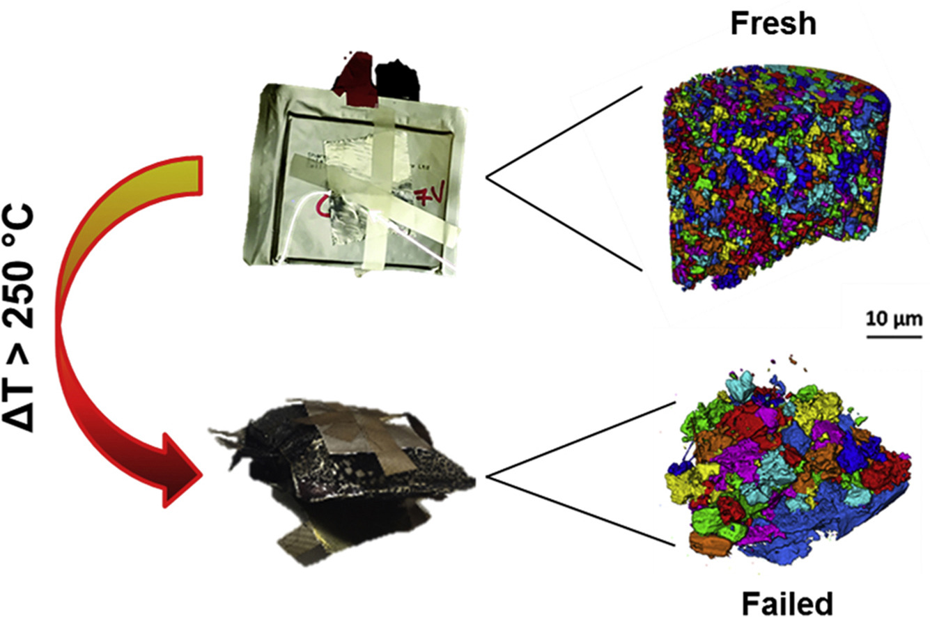 In recent years, the ability to examine the processes that cause the catastrophic failure of batteries as a result of thermal runaway has improved substantially. In this work, the effect of thermal runaway on the microstructure of the electrodes of a Na-ion battery is examined using X-ray computed tomography for the first time. The thermal failure induced via accelerating rate calorimetry enabled the examination of failed electrodes, which were subsequently compared with fresh samples. Pre- and post-mortem microstructural analysis shows changes in both electrodes as a result of the thermal runaway process at the micrometre length-scale. It is seen that the cathode shows the largest changes in structure, with the anode remaining morphologically similar post-failure at the sub-micron length-scale. The formation of a highly X-ray attenuating layer, which is proposed to be a metallic product of the thermal runaway reaction, is observed, indicating that the thermal runaway mechanisms which occur in Na-ion batteries may be similar to those reported for Li-ion systems.