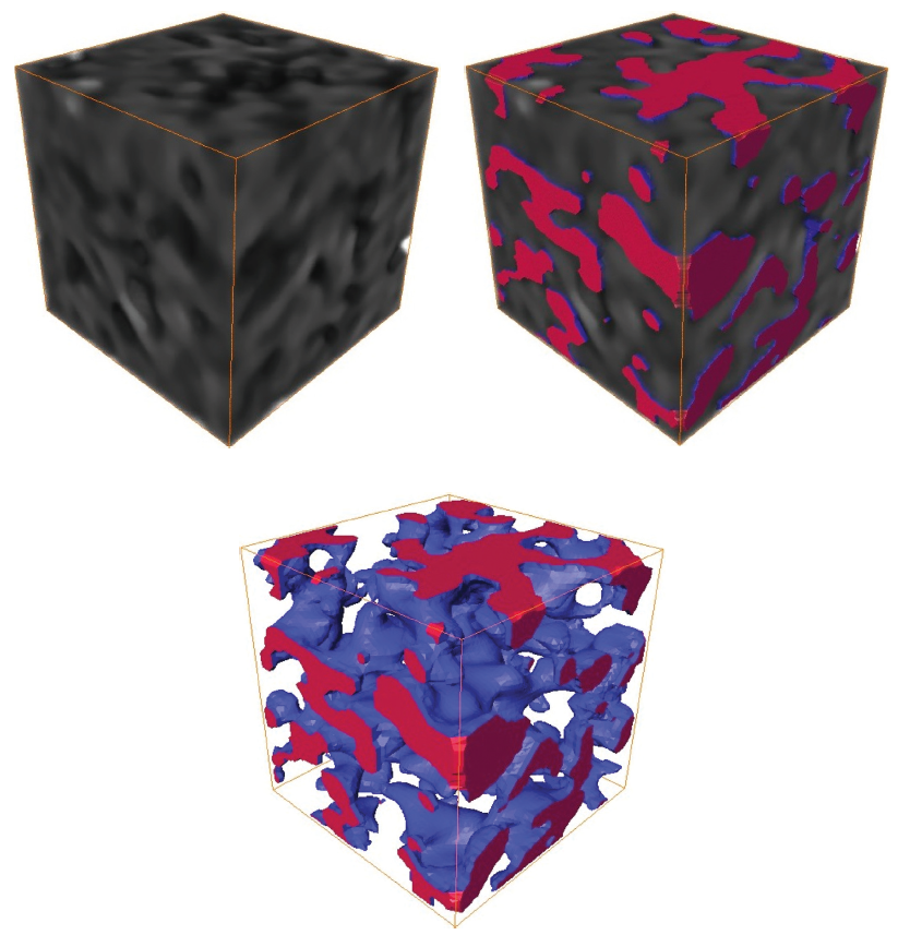 In order to better distinguish pores from skeletons and make quantitative descriptions, an appropriate binarization should be conducted on the grayscale images. On an Avizo platform, the coal model was first segmented by pressing the Image Segmentation button, and then the segmented image was displayed by pressing the Surface View button.