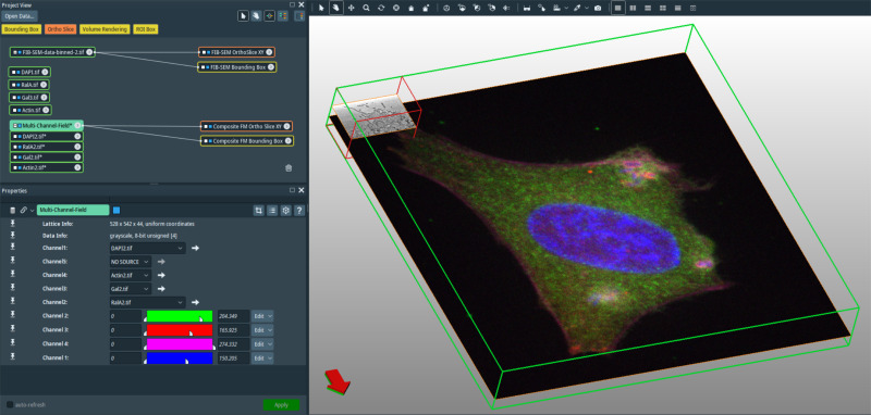 In recent years new methodologies and workflow pipelines for acquiring correlated fluorescence microscopy and volume electron microscopy datasets have been extensively described and made accessible to users of different levels. Post-acquisition image processing, and particularly correlation of the optical and electron data in a single integrated three-dimensional framework can be key for extracting valuable information, especially when imaging large sample volumes such as whole cells or tissues.