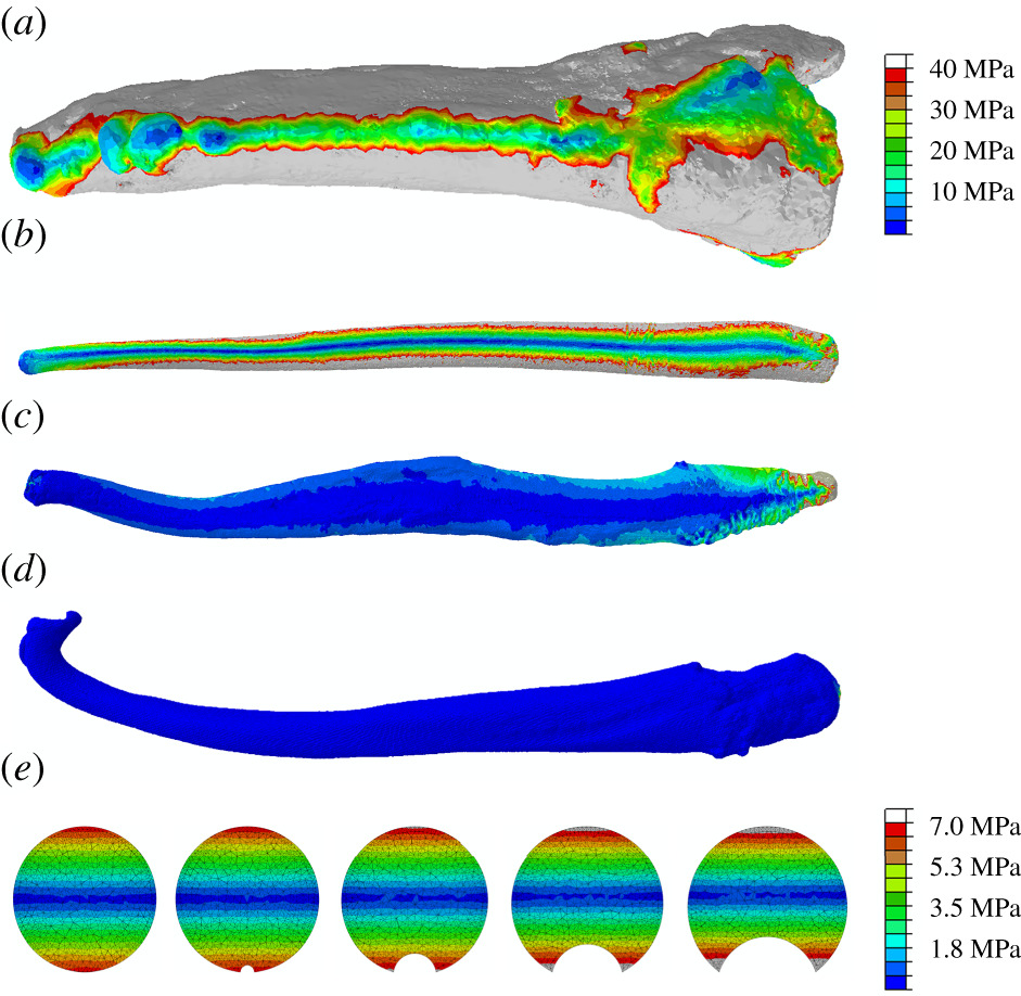 The baculum (os penis) is a mineralized bone within the glans of the mammalian penis and is one of the most morphologically diverse structures in the mammal skeleton. (…) For the first time, to our knowledge, we apply a computational simulation approach (finite-element analysis; FEA) to quantify the three-dimensional biomechanical performance of carnivoran bacula (n = 74) based upon high-resolution micro-computed tomography scans. (…) a highly significant negative relationship exists between intromission duration and baculum stress under dorsoventral bending. Furthermore, additional FEA simulations confirm that the presence of a ventral groove would reduce deformation of the urethra. We take this as evidence in support of the ‘prolonged intromission’ hypothesis, suggesting the carnivoran baculum has evolved in response to pressures on the duration of copulation and protection of the urethra.