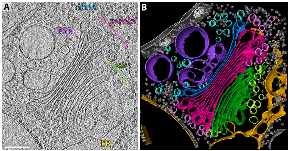 Tomograms were visualized in Amira software. We localized 267 COPI vesicles and buds, measured their membrane-to-membrane diameters and determined their central coordinates.