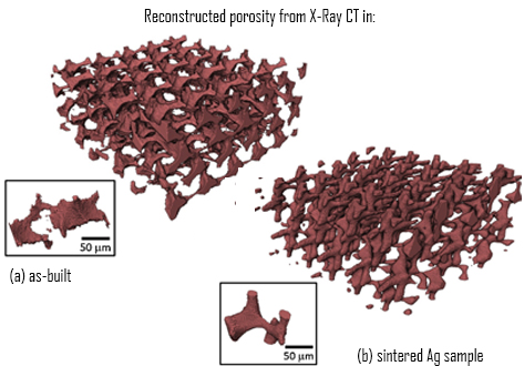 The 3D structures where examined using a FEI Quanta 200 3D Dual Beam FIB-SEM. The microstructure of such interfaces was studied using a FEI Tecnai F20 TEM operated at 200 kV. Porosity was characterized by X-Ray Computed Tomography (CT) carried out on a Zeiss Xradia Versa XRM-500 system (voxel size 1 μm). The rendering of the porosity was performed using the software Avizo Fire 9.0.1. The comparison of the physical dimensions of example printed specimens with those of the corresponding digital models was used to assess the printing accuracy that can be achieved by this AM approach.