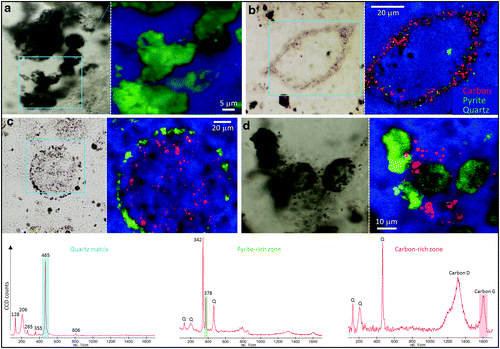 The ∼3.48 billion-year-old Dresser Formation, Pilbara Craton, Western Australia, is a key geological unit for the study of Earth’s earliest life and the habitats it occupied. Here, we describe a new suite of spheroidal to lenticular microstructures that morphologically resemble some previously reported Archean microfossils. Correlative microscopy shows that these objects have a size distribution, wall ultrastructure, and chemistry that are incompatible with a microfossil origin and instead are interpreted as pyritized and silicified fragments of vesicular volcanic glass. Organic kerogenous material is associated with much of the altered volcanic glass; variable quantities of organic carbon line or fill the insides of some individual vesicles, while relatively large, tufted organic-rich laminae envelop multiple vesicles.